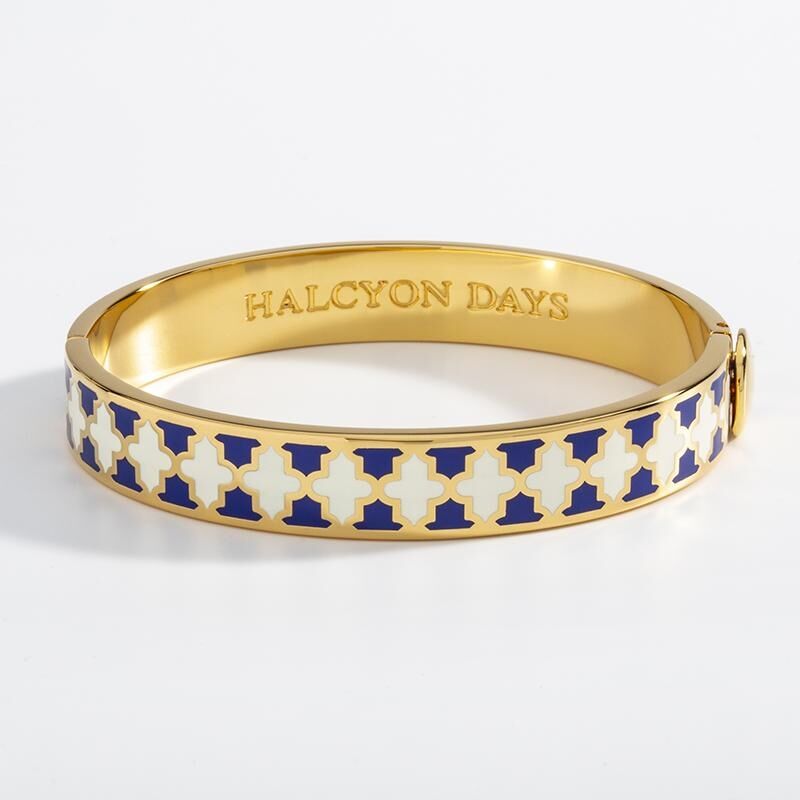 1cm Agama - Cobalt & Cream - Gold - Hinged Bangle - NEW