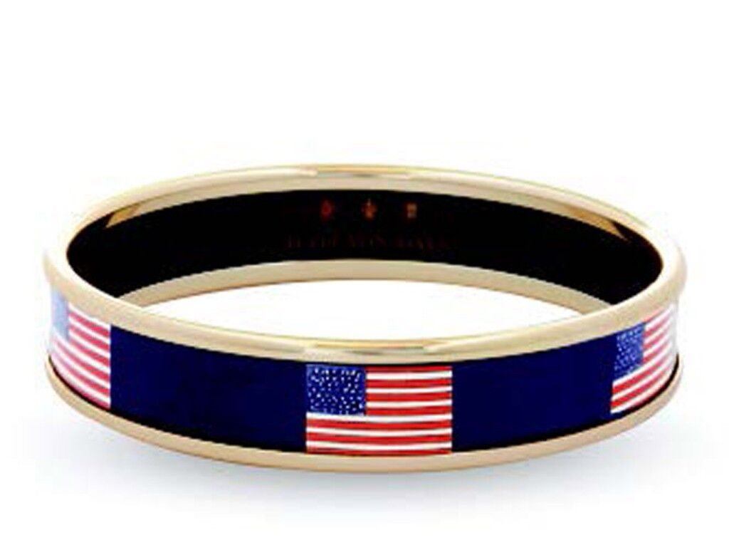 Bu güzel, sade el yapımı, el süslemeli emaye bilekliğin genişliği 0,5 inçtir, bu nedenle koleksiyonumuzdaki diğer emaye bileziklerle istifleyip karıştırmanız için mükemmel boyuttur. Donanma arka planında ABD bayrakları ve 18 ayar altın yükseltilmiş çerçeveler bulunan bu bilezik, Bir ömür boyu dayanacak şekilde tasarlanmış gerçek zanaatkâr İngiliz işçiliğinin örneği.