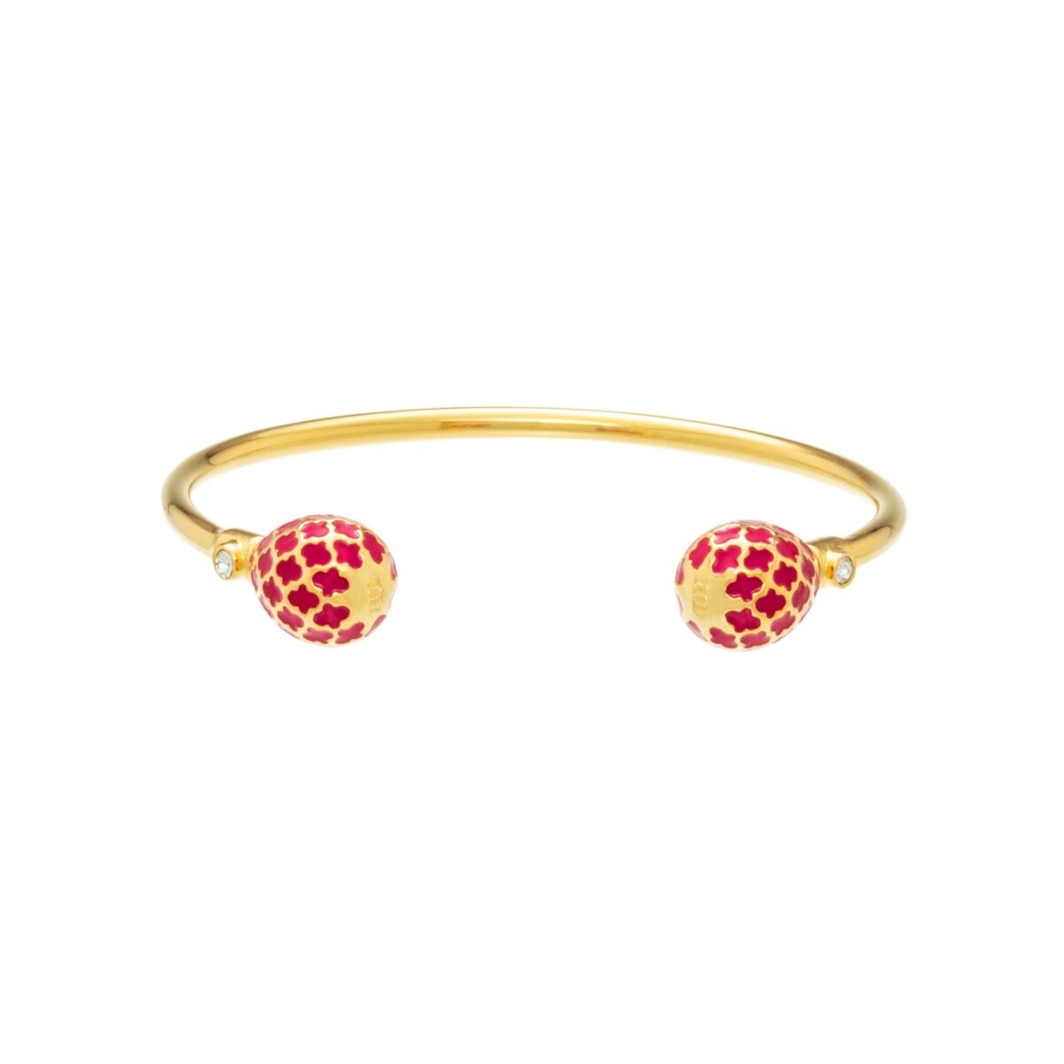 Çarpıcı Agama Torque Bileziği ile aksesuar oyununuzu bir üst seviyeye taşıyın. Bu şık tasarım, gözyaşı damlası tarzı pembe turmalin ve altın emaye gözyaşı damlalarını elmas vurguyla birleştirerek çağdaş stil ve zamansız zarafetin mükemmel bir karışımını yaratıyor.