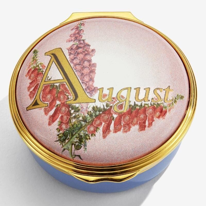 Pembe güzel! Bu enfes emaye biblo kutusunu, hayatlarında unutulmaz bir dönüm noktasını işaretlemek için özel birine verin. Halcyon Days'in 'Ağustos' kutusu, yumuşak bir gül arka planına karşı enfes tozlu pembe ve yakut kırmızısı yüksükotu dallarına sahiptir. İngiltere'de yetenekli zanaatkarlar tarafından hazırlanmış bu parça, 18 ayar altın detaylarla elde tamamlanmıştır. Bir ömür boyu dayanacak şekilde tasarlanmış muhteşem bir hediye, kesinlikle sahibi tarafından çok değerlidir.