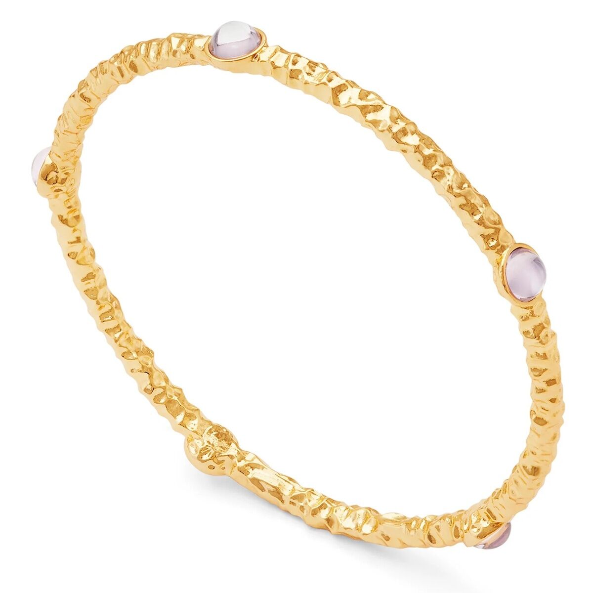 Cabochon Rose Quartz & Gold Push-On Bangle