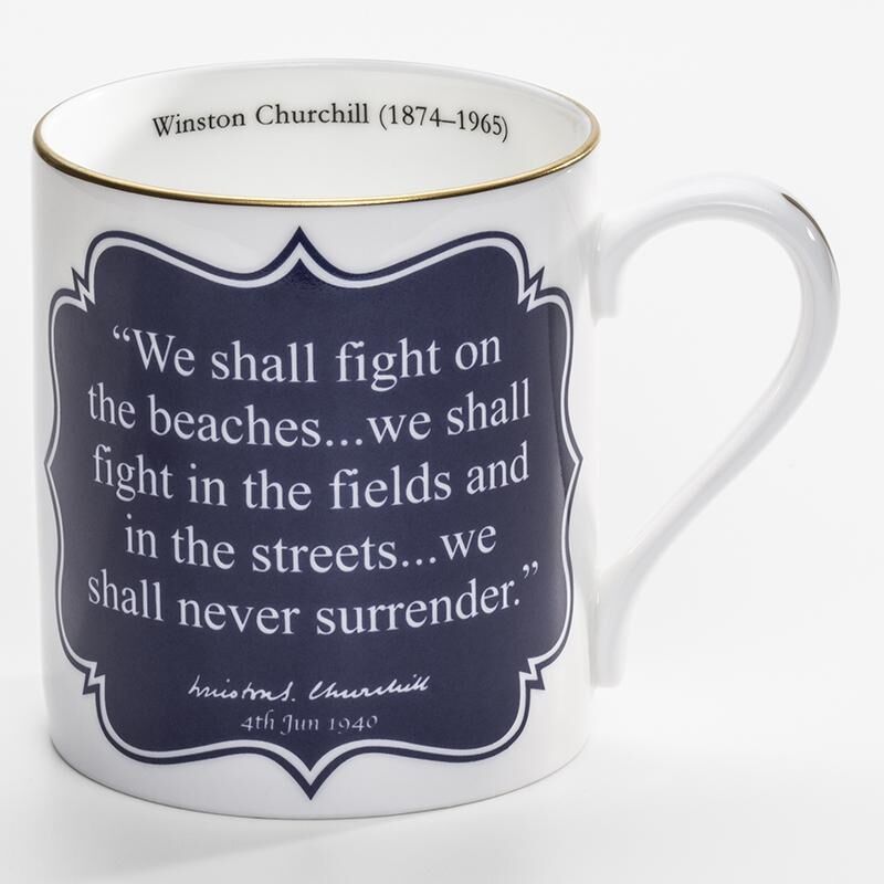 Halcyon Days, Sir Winston Churchill'in 50. ölüm yıldönümünün anılmasının bir parçası olarak, her biri onun en ünlü aforizmalarından birini taşıyan keyifli bir kupa serisi yaratmaktan gurur duyuyor. Bu alıntıda Churchill'in iddialı bağımsızlığı ve kararlılığı hissedilir. Tüm kupalarımızda olduğu gibi, bu da en yüksek kaliteyi sağlamak için İngiliz Fine Bone China'dan incelikle hazırlanmış ve daha sonra parlak, gösterişli bir yüzey oluşturmak için altınla elle yaldızlanmıştır.