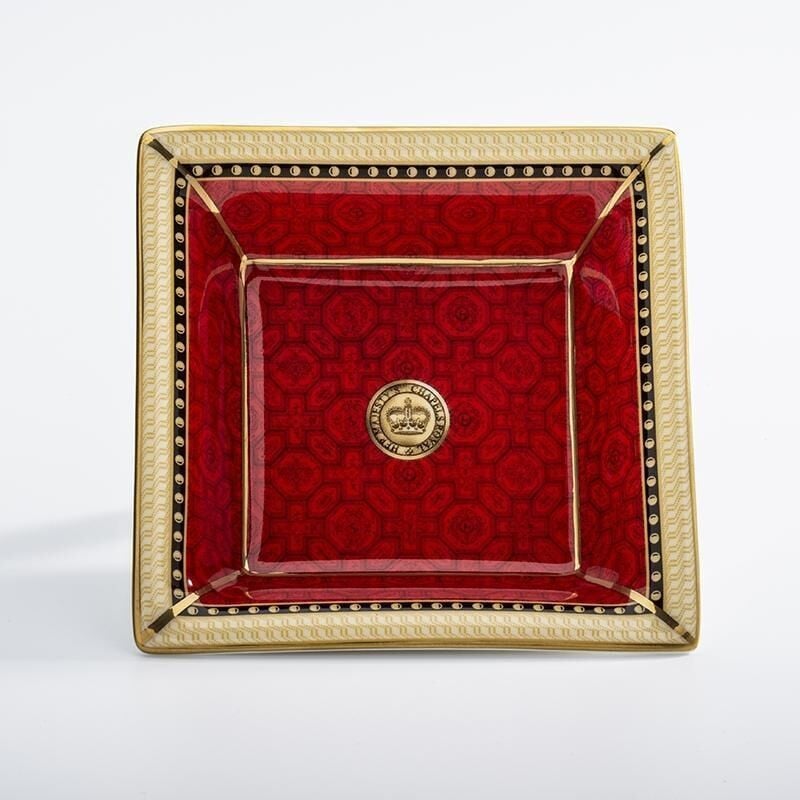 Bu pratik ama şiirsel tasarımlar için, 'Kraliyet Şapeli'nin Çocukları'nın 17. Yüzyıl tuniklerinin ikonik kırmızı kumaşından başka bir ilham kaynağı aramadık. Fincan, fincan tabağı, kupa veya maşrapa olsun, kumaşın inceliklerini her bir parçanın kırmızısı içinde, parlatılmış altının ince vurgularıyla kumaşın merkez sahnesini oluşturuyor. Herhangi bir hazineyi güvende tutmak için biblo tepsilerimize ve kutularımıza bakın ve dekoratif bir özellik ararken, biblolarımız ve müzik kutularımız herhangi bir iç mekana mükemmel bir ektir.