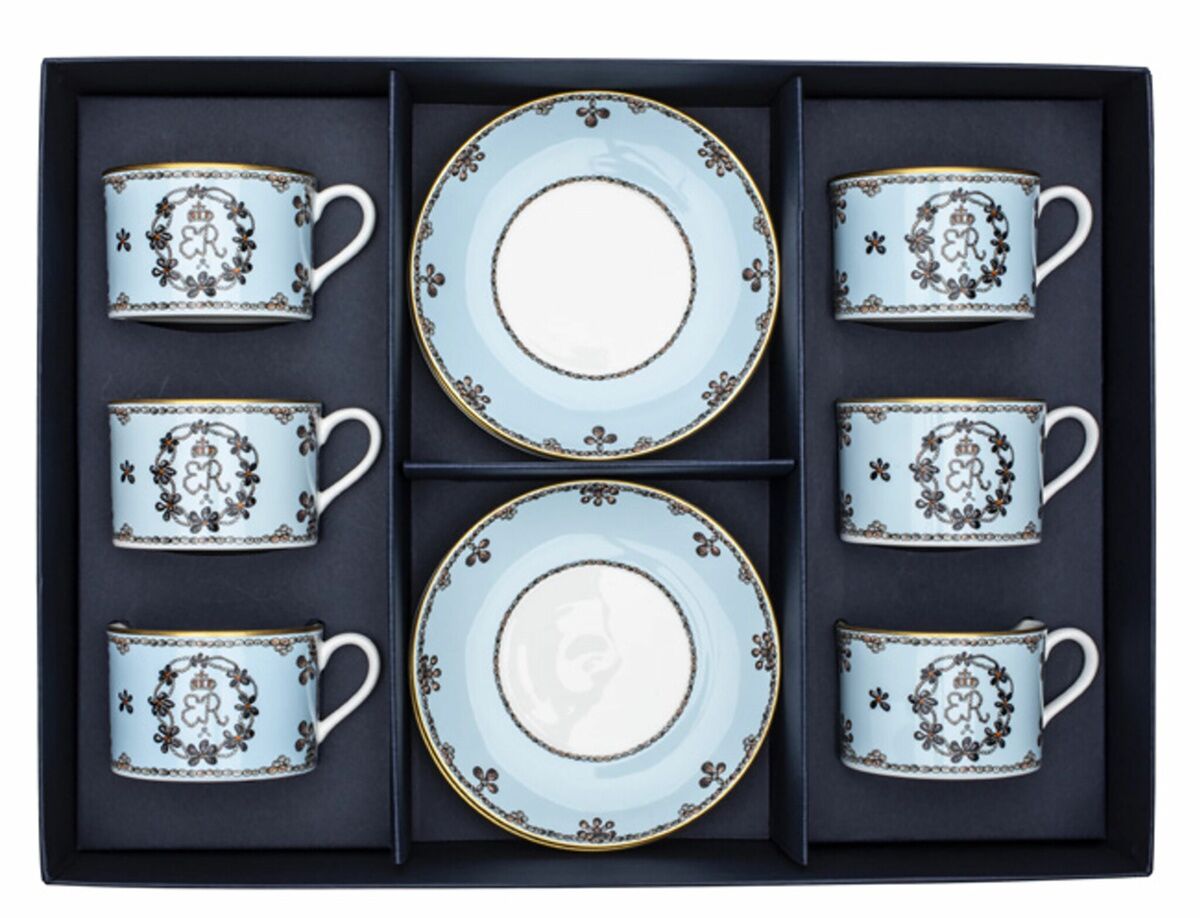 Halcyon Days CoM Shells Mavi Çay Bardağı ve Tabağı Seti x 6 , MPN: Halcyon Days emaye Masa ve Yemek Takımı koleksiyonundan BCCSB12T6G.