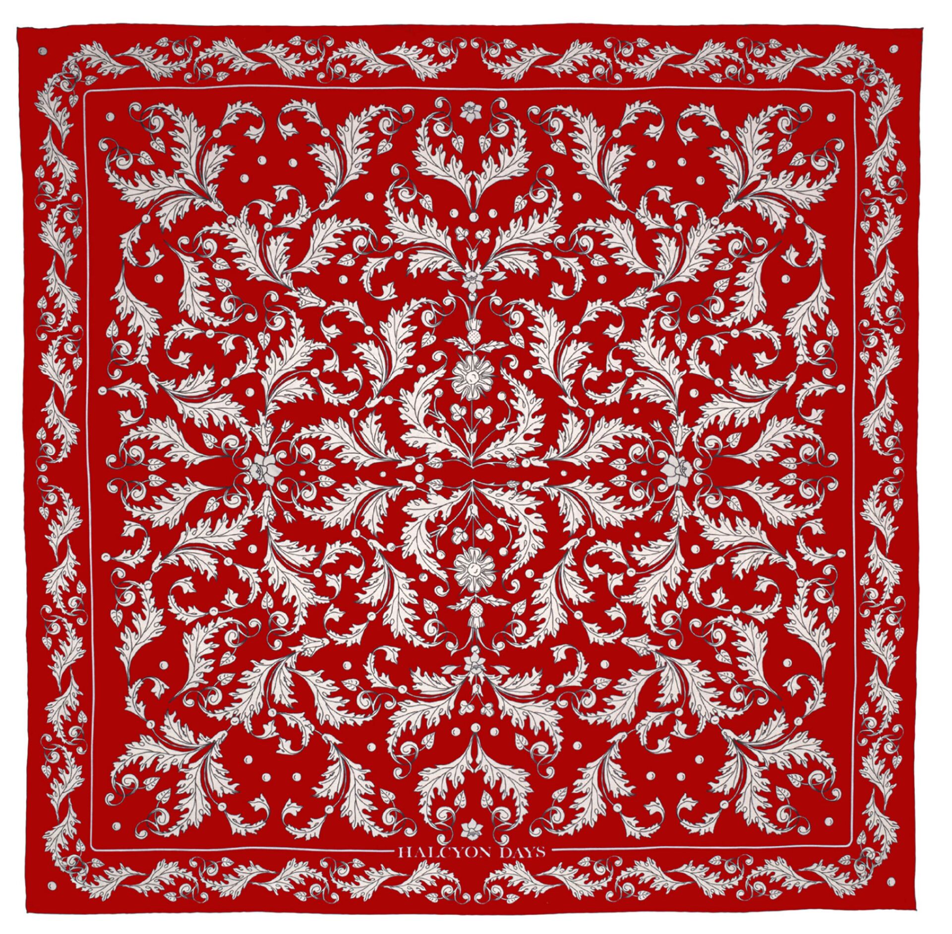 Flowers of the Realm Red 90x 90 100% Silk Scarf