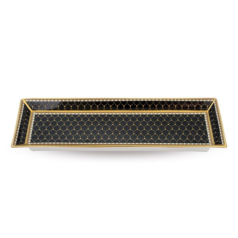 Halcyon Days biblo tepsisi, hayatınızı düzenlemek için vazgeçilmez bir parça! İngiltere'de yapılan ve en iyi İngiliz kaliteli kemik çinisinden üretilen bu dikdörtgen biblo tepsisi, bir zamanlar yüzlerce geyik boynuzu ile süslenmiş Gordon Kalesi'ndeki tavandan ilham alan klasik Boynuz Kafes tasarımımızla süslenmiştir.