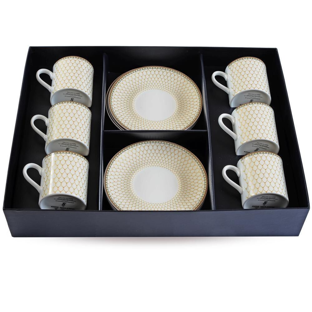 Bu zarif altı Antler Kafes kahve fincanı ve fildişi altlık seti, lüks bir hediye veya kendisi için görkemli bir muamele.