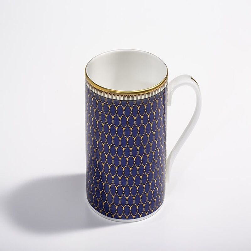 Altın yaldızlı kenarlı derin bir gece yarısı fonu üzerine yerleştirilmiş bu kupa, sofistike sipper için zevkli bir hediyedir.