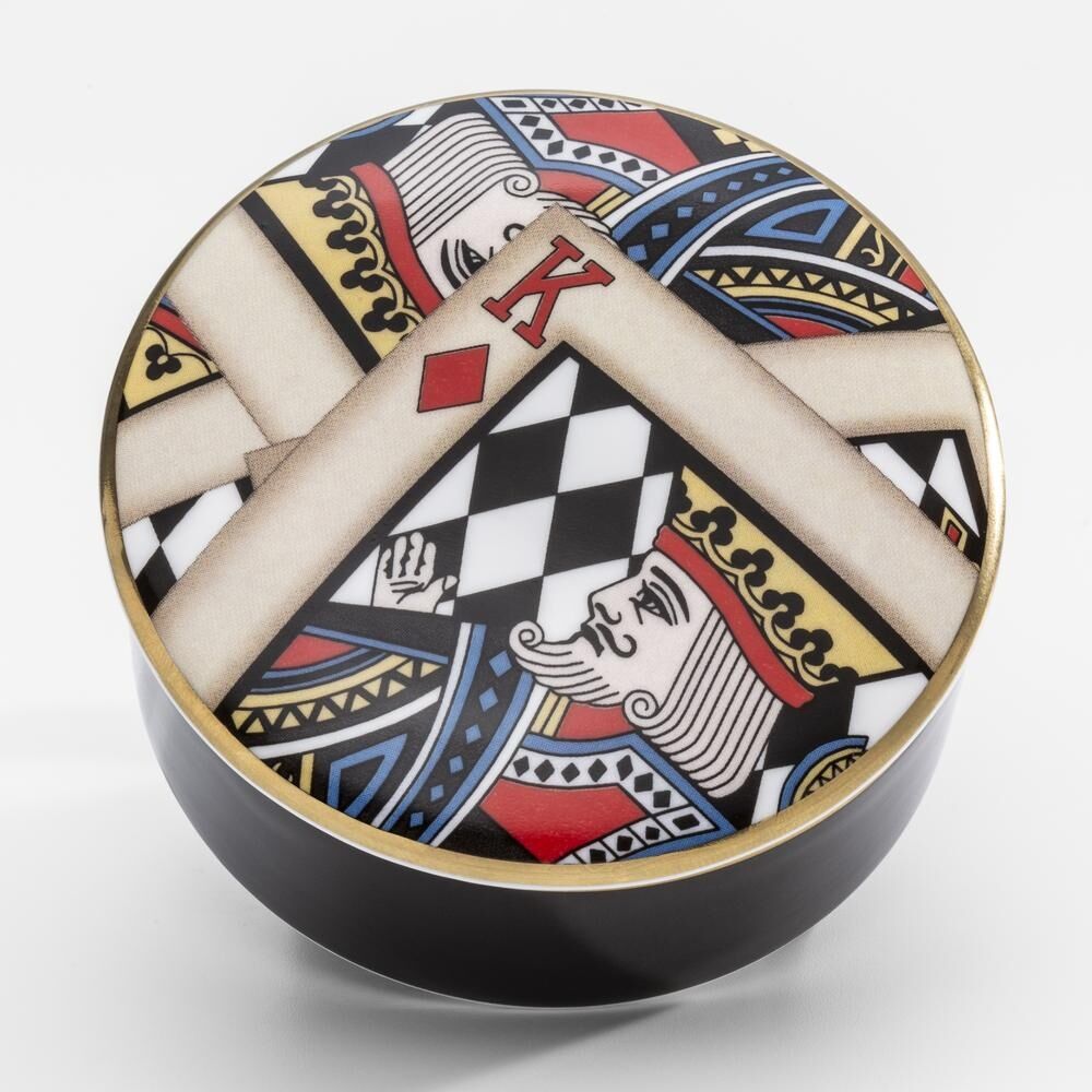 Bu İngiliz ince kemik çini yuvarlak biblo kutuları, oyun gecelerinin eğlenceli rengini yakalar ve herhangi bir kart masasına veya iç mekana göz alıcı bir katkı sağlar. Başarılı bir poker oyunundan sonra kazançlarınızı saklamak için mükemmel bir yer.