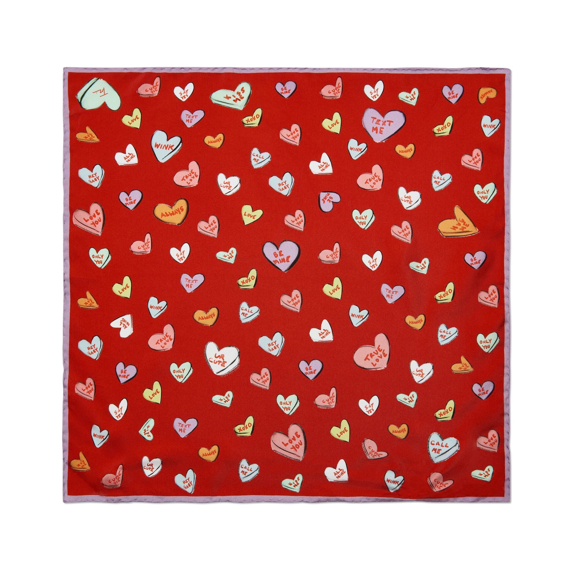 Love Hearts Red 45x45 100% Silk Mini Scarf