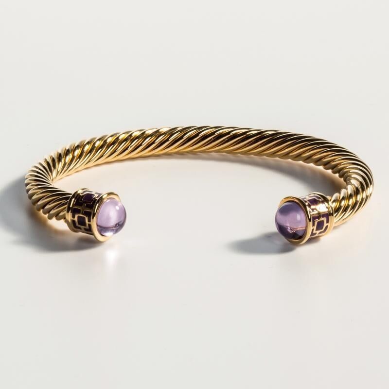Bu bilekliğin ametist notaları bileğinizi güzelleştirsin. Bu yeni menekşe rengi dokunuş, klasik Maya tork tasarımımıza ilginç yeni bir dokunuş katıyor. Mükemmel uyum için hafifçe sıkın.
