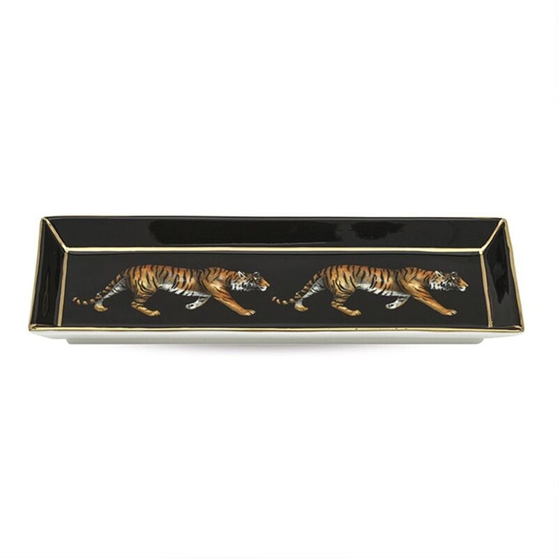 William Blake'in ünlü parçasından ilham alan bu "Tyger, Tyger yanan parlak" siyah dikdörtgen tepsi, şık Magnificent Wildlife koleksiyonumuzun bir parçasıdır. Elle boyanmış kaplanımız, pratikliği kükreyen stille eşleştiren parçalar oluşturarak siyah bir arka plan üzerinde gizlice izliyor.