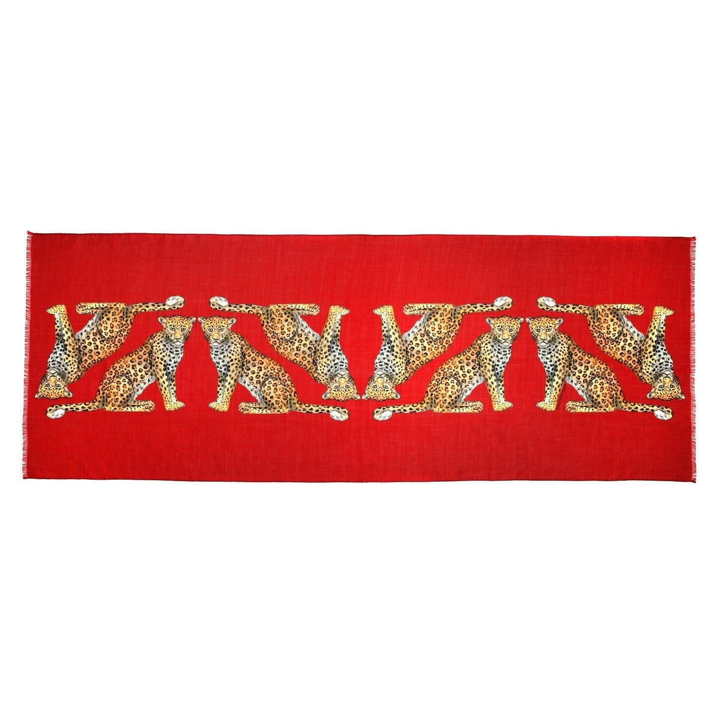 MW Twin Leopards RED 170cm x 65cm Wool Silk Long Scarf