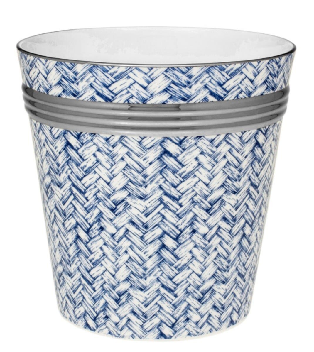 Nina Campbell'ın doğa sevgisinden esinlenen, The Marguerite Collection'dan bu büyüleyici hasır örgülü saksı, İngiltere'nin Stoke-on-Trent kentinde Halcyon Days zanaatkarları tarafından tamamen el işçiliğiyle üretilen İngiliz ince kemik çini üzerine yerleştirilmiştir. Nina tarafından tasarlanan resimli hasır örgü tasarımı, bunaltıcı yaz öğleden sonralarında açık havada yemek yemenin güzel anılarını canlandırır.
