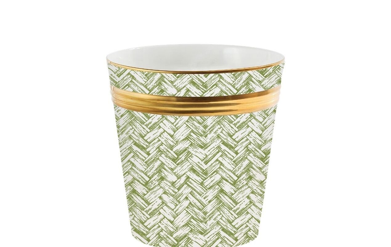 Basket Weave Green Cachepot Top D: 165mm Base D: 120mm H: 175mm Top D: 6 1/2” Base D: 4 23/32” H: 6 57/64”