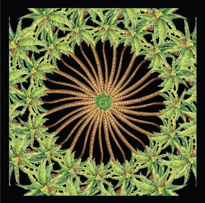Klasik siyah zemin üzerine yemyeşil palmiye ağacı deseni, her gününüzü tatildeymişsiniz gibi hissettirecek. En yüksek kalitede İngiliz ipeği.