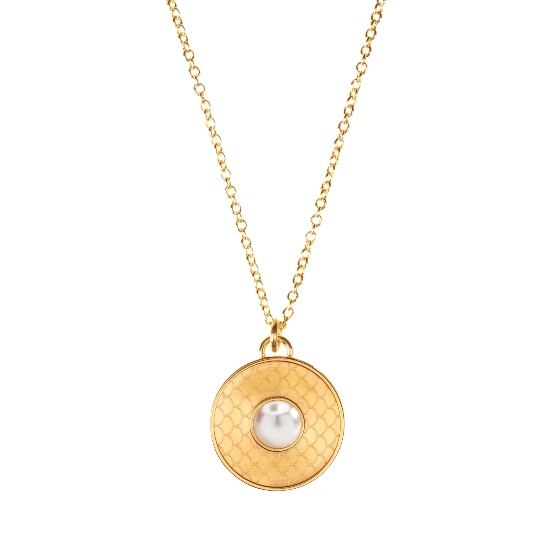 Bu kolye, 18 ayar altınla kaplanmış aynı yüksek kaliteli pirinçten yapılmıştır. Ortadaki cam kabaşon, görünümünüze rafine bir ışıltı dokunuşu katmak için ışığı güzelce yakalar.
