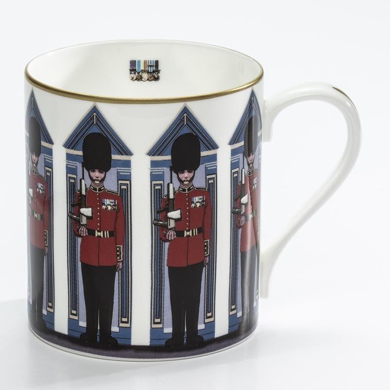 Enfes Nöbetçi Kutusu ve Muhafız kupamız, nöbetçi bir nöbetçinin hava koşullarından korunmak için ayakta kalabileceği açık bir önü açık bir sığınak ile süslenmiştir . Bu enfes parça İngiliz kaliteli kemik çinisinden yapılmıştır ve kenarı 18 kt altınla yaldızlıdır. Ziyaretçiler veya gelenek sevenler için özel bir hatıra oluşturan gösterişli bir parça.