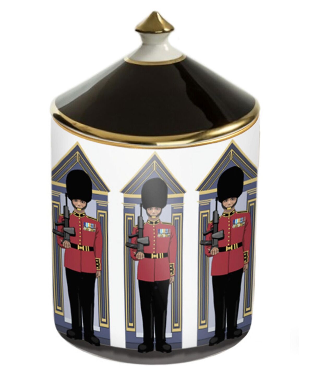 Bu İngiliz ince kemik çini mum, görsel ve burundan ayırt edebilenler için mükemmel bir hediyedir. Tasarımda, Kraliçe Muhafızları'nın geleneksel kırmızı tunikleri ve ayı postu şapkaları giymiş askerler yer alır. Muhteşem yasemin kokusu narin ve dingindir, narenciye ve ballı beyaz yaprak notalarına sahiptir. Mumun tasarımı anında Londra'nın görüntülerini çağrıştırırken, baş döndürücü aroması sizi tam çiçek açmış, güneşli bir kır bahçesine götürecektir. 24 ayar altınla yaldızlanmıştır.