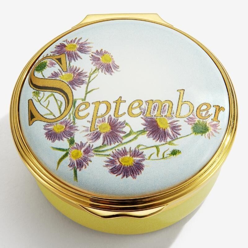 Halcyon Days'in bu enfes ay kutusuyla hatırlanacak bir Eylül yapın. Eylül ayındaki berrak gökyüzünü andıran yumuşak pastel mavi bir arka plana karşı yabani mor papatyaların serpiştirildiği bu, ister Doğum Günü ister Vaftiz olsun, özel bir günü kutlamak için muhteşem bir hediye. Baştan sona İngiltere'de yetenekli zanaatkarlar tarafından hazırlanmış bu emaye biblo kutusu, 18 ayar altın detaylarla elle tamamlandı.