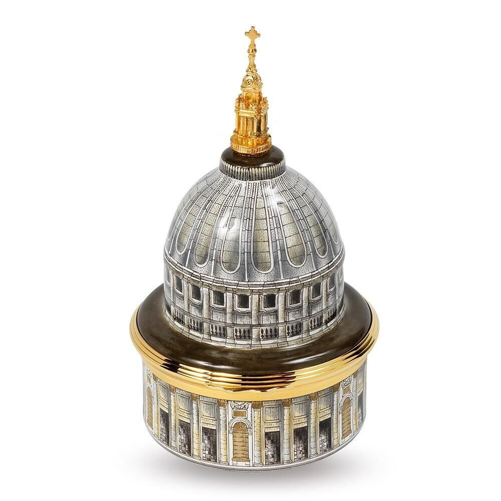 Şimdiye kadar yapılmış en seçkin ve unutulmaz Halcyon Günleri kutularından biri St Paul's müzik kutusudur. Aslen 2011'de tamamlanmasının 300. yıldönümünü kutlamak için hazırlanmış olan zanaatkarlarımız, bu ikonik Londra binasının gerçek ihtişamını ve Sir Christopher Wren'in şaheserinin ihtişamını bu emaye kutuda yakaladılar.