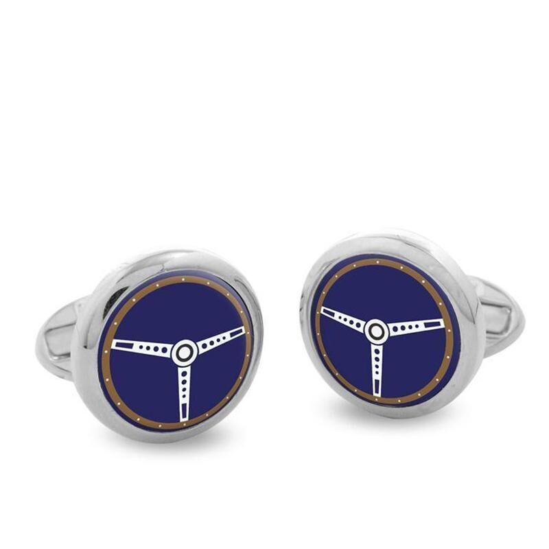Steering Wheel Blue - Round - Palladium - Cufflinks