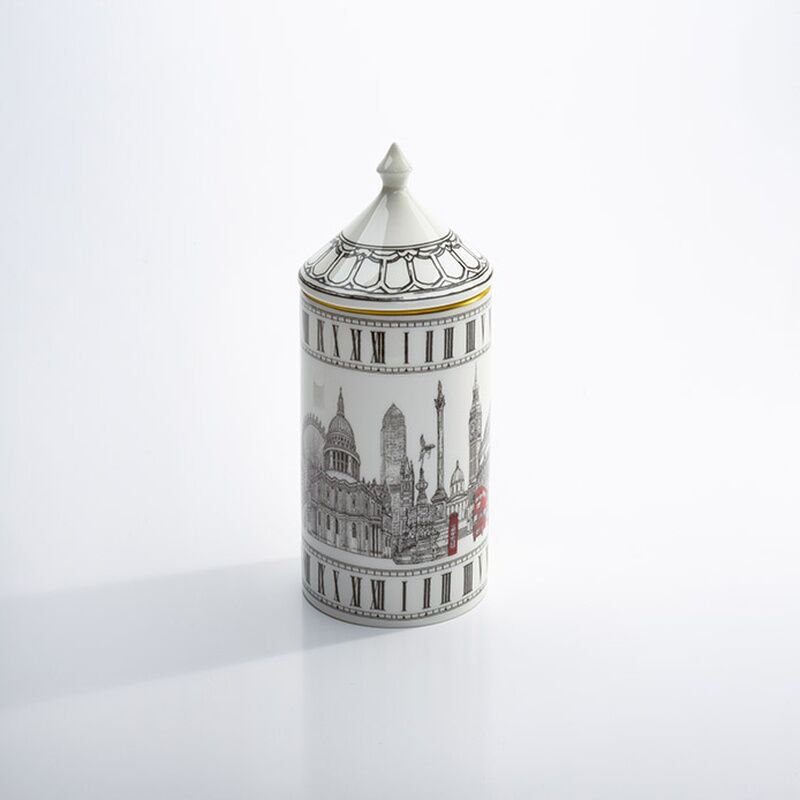 İngiliz ince kemik çinisinden hazırlanmış bu zarif dolgulu sümbül kokulu mum, Big Ben, London Eye ve Royal Albert Hall gibi ünlü Londra anıtlarını ve simgelerini anarak İngiliz mirasımızı kutlayan tek renkli bir tasarıma sahiptir.